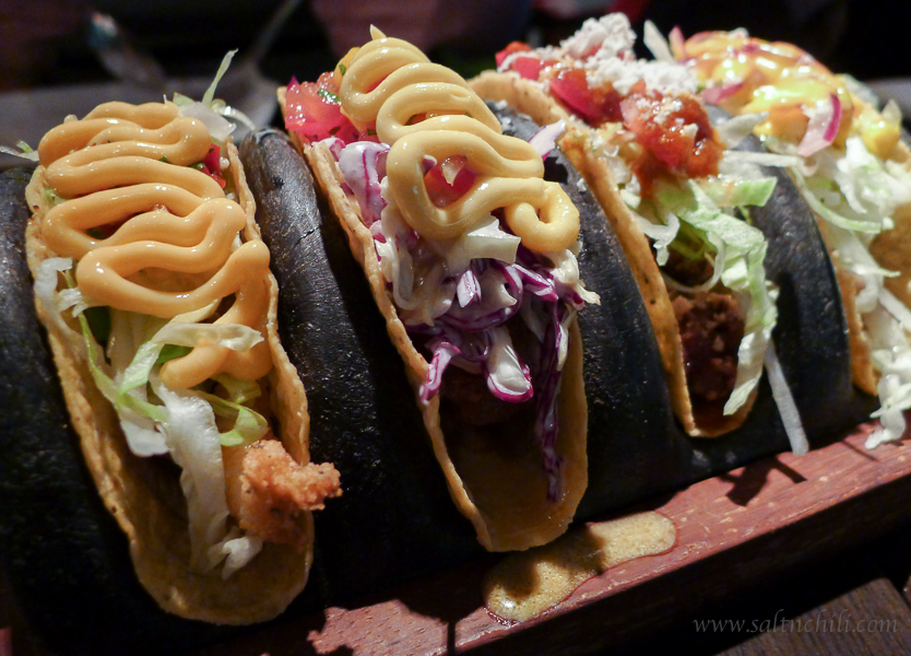 The decor of Chicha is both mysterious and sleek whilst exuding a vibrant energy. The space is split into 3 sections, the main dining section with long tables and leather benches, a smaller area with higher tables overlooking the kitchen and a cute little bar at the far end. The first time I went, I was seated in the dining section, which was great for a larger party. And this time we were seated at a table overlooking the busy kitchen, which I thought was ideal for our party of 4 for chatting.