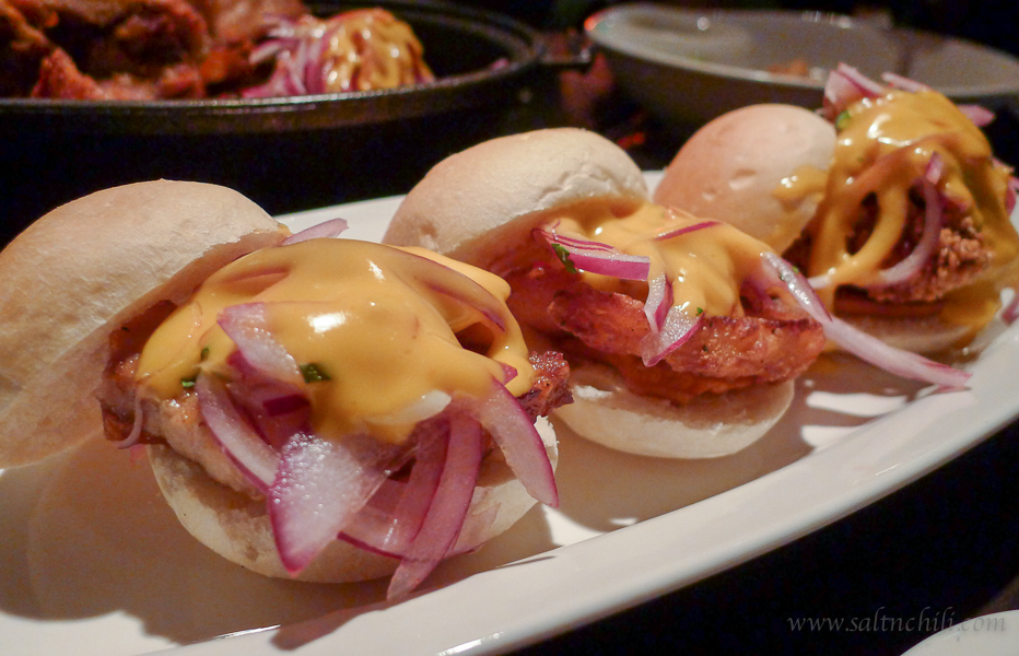 Next up was the Pan Con Chicharron, which looked like mini burgers overflowing with chunks of meat, salsa criola (which is a Peruvian red onion relish), sweet potato with a creamy aji amarillo sauce. We couldn’t help but to order all three meats, chicken, pork and fish. I would say the juicy pork was my fave.
