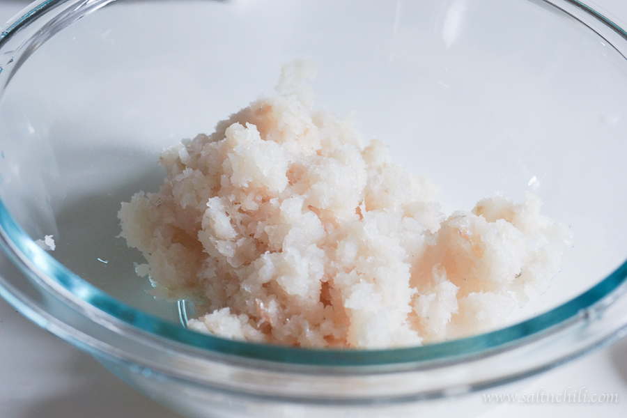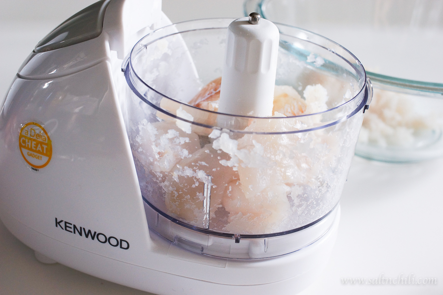 Wash and pat the fish dry. Cut the fish into smaller chunks and mince in a food processor.