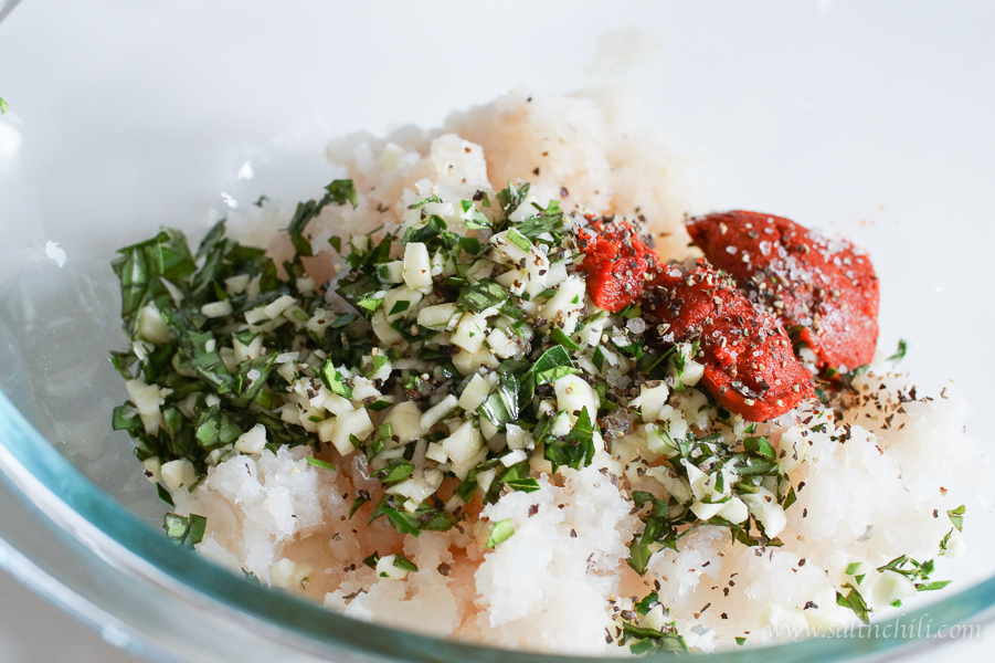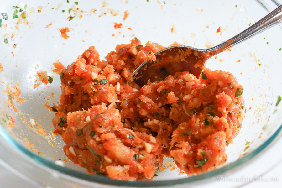 Mix the ingredients with a spoon or you hands until everything is combined and forms a thick paste.