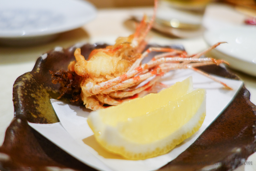 They took the shrimp head from the sashimi and fried it with batter, served with lemon.