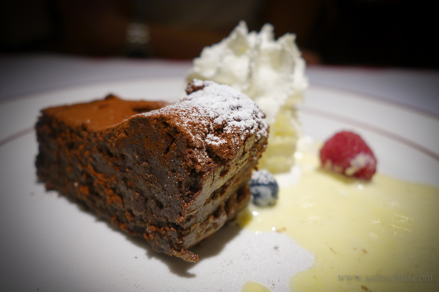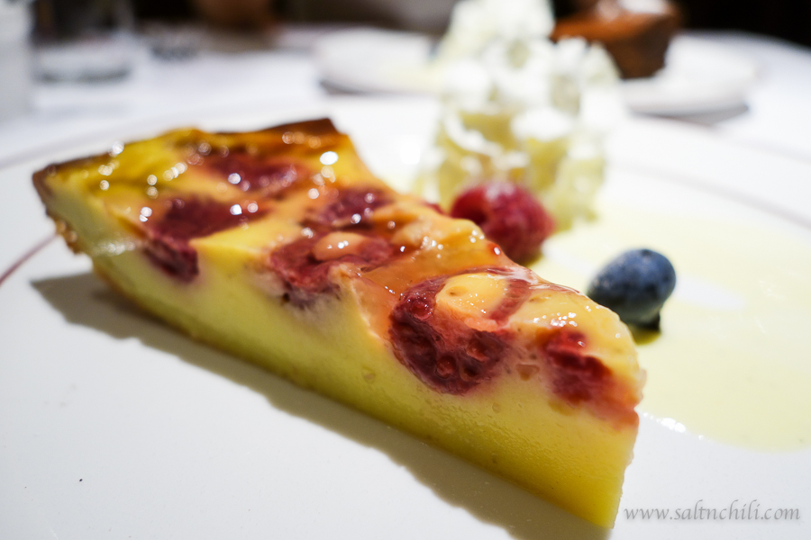 To complete our fulfilling meal, we had the Raspberry Clafoutis and Chocolate brownie for dessert. I’ve never had a clafoutis before, so I was pleasantly surprised with this not-overly-sweet custard-like pudding with whole raspberries suspended in it.