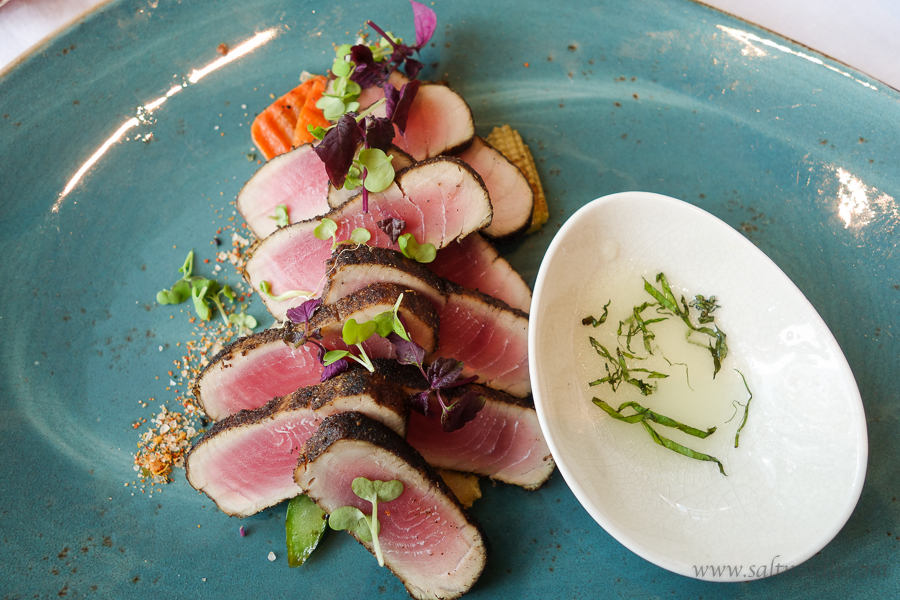 I had the Seared Pepper Crusted Ahi Tuna Steak with Calamansi Dressing, which looked absolutely gorgeous. The tuna was a bit on the dry side, but the flavors of this dish made up for this small mishap. I was intrigued with distinct smokiness of the tuna, combined with the micro herbs and salts on the dish cut through with the acidity of the calamansi dressing.