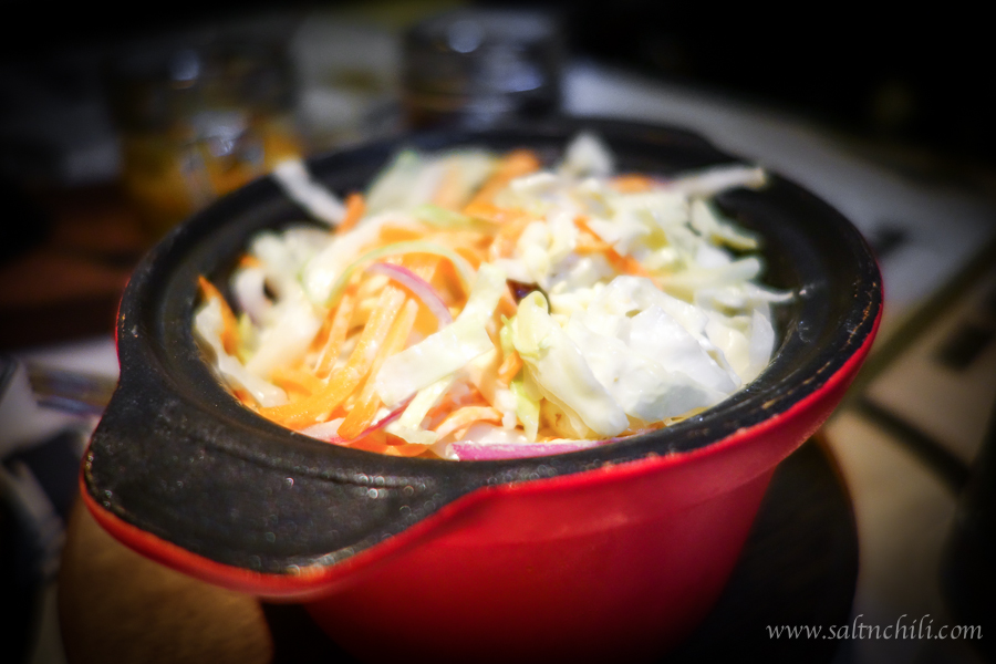 To balance out our protein dominant meal, we also ordered some veggies ~ Steamed Broccoli and Coleslaw.   I liked the coleslaw having a balanced dressing and not being overly dressed, but the broccoli was rather bland.