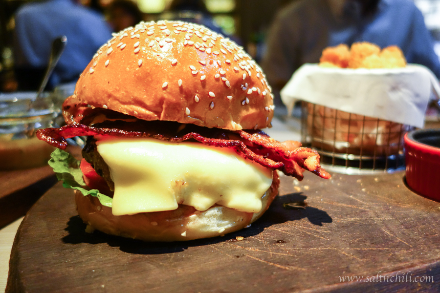 It took me a while to decide on ordering the BBQ Beef Bacon & Cheddar Burger.  I was tempted to try the Chop House Pork Burger, but the thought of passing over juicy beef just didn’t sit with me.