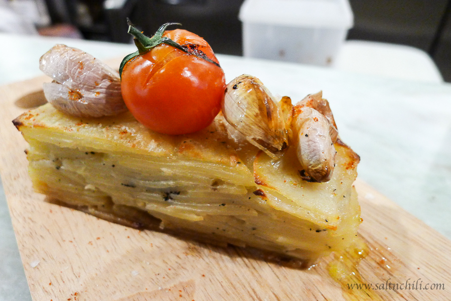Hubby order the Kurobuta Pork Chop, which was succulent and juicy according to him (I forgot to steal a bite from him plate). But I didn’t forget to try the garlicky stacked potatoes that came as a side…yum!